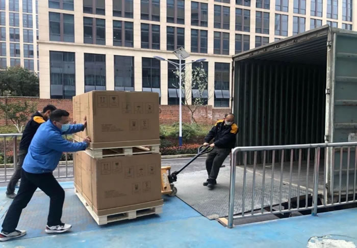 山外山公司員工將血液凈化設(shè)備運(yùn)往疫區(qū)