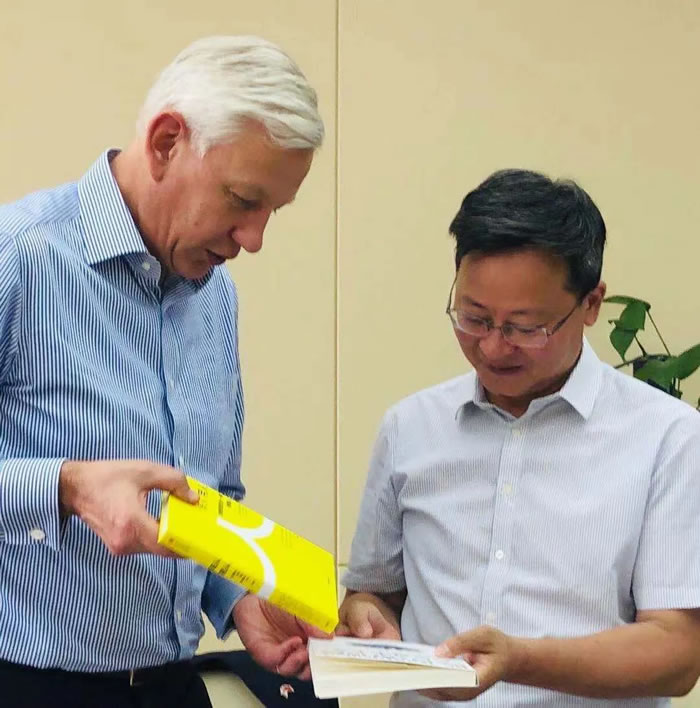 值得一提的是,鮑達(dá)民先生在擔(dān)任駐華大使以前還曾擔(dān)任清華大學(xué)經(jīng)管學(xué)院的首位管理實(shí)踐杰出客座教授和清華大學(xué)經(jīng)管學(xué)院的顧問(wèn)委員會(huì)委員。曾在清華經(jīng)管學(xué)院、牛津大學(xué)商學(xué)院和其他全球知名商學(xué)院開(kāi)展領(lǐng)導(dǎo)力講座,并曾參與合著四本著作,涉及財(cái)務(wù)管理和領(lǐng)導(dǎo)力等主題。高光勇董事長(zhǎng)閱讀過(guò)其中的部分著作。在交流中,鮑達(dá)民大使欣然在其所著、高光勇董事長(zhǎng)閱讀過(guò)的兩本著作上簽名并為高光勇董事長(zhǎng)贈(zèng)言,勉勵(lì)山外山公司打造全球一流血透品牌,造福全世界腎病患者,座談會(huì)在一陣歡聲笑語(yǔ)中圓滿結(jié)束。