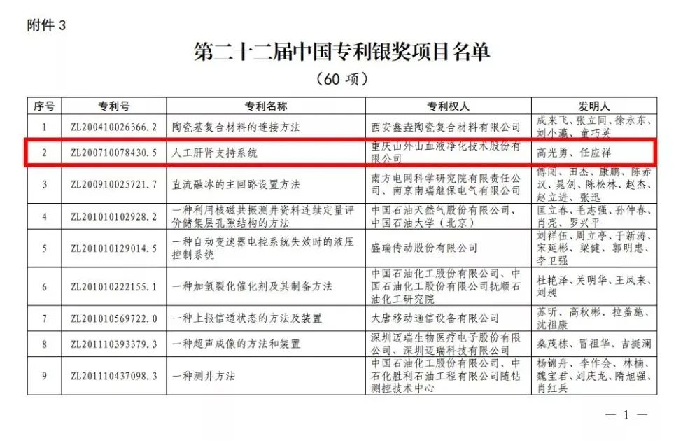 SWS-5000系列血液凈化設(shè)備榮獲"第二十二屆中國專利銀獎