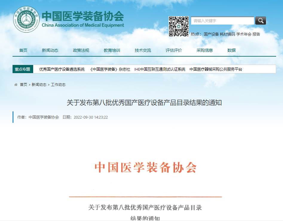 近日,中國醫(yī)學(xué)裝備協(xié)會完成了第八批優(yōu)秀國產(chǎn)醫(yī)療設(shè)備產(chǎn)品目錄遴選工作,并公布了《第八批優(yōu)秀國產(chǎn)醫(yī)療設(shè)備產(chǎn)品目錄》。