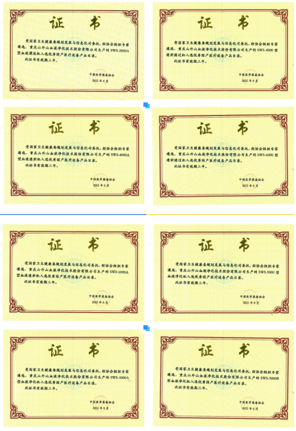 此前,SWS-5000系列血液凈化設(shè)備還憑借優(yōu)良的質(zhì)量、先進(jìn)的技術(shù)和強(qiáng)大的血液凈化功能,被中國醫(yī)療器械裝備協(xié)會納入防疫重點物資目錄,并榮獲“第二十二屆中國專利銀獎(排名第二)”。此次又成功入選第八批優(yōu)秀國產(chǎn)醫(yī)療設(shè)備產(chǎn)品目錄,足以彰顯山外山公司產(chǎn)品的卓越品質(zhì)和強(qiáng)勁實力。