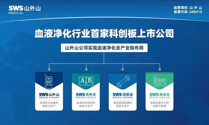 經(jīng)過23年的發(fā)展,基于原創(chuàng)性血液凈化設備關鍵核心技術,山外山公司擁有SWS-3000系列、SWS-5000系列等5款具有代表性的連續(xù)性血液凈化設備(CRRT),SWS-4000系列、SWS-6000系列4款代表性的血液透析機,以及SWS-2000型、SWS-2000A型的血液灌流機,實現(xiàn)了血液凈化設備領域全系列產(chǎn)品的開發(fā)和應用,且公司系列產(chǎn)品均入選“優(yōu)秀國產(chǎn)醫(yī)療設備產(chǎn)品遴選”目錄;目前公司已陸續(xù)獲得血液透析濃縮液、血液透析干粉、血液透析器、透析液過濾器、連續(xù)性血液凈化管路、一次性使用血液灌流器三類醫(yī)療器械注冊證,已基本完成自產(chǎn)血液凈化耗材的全線布局。
