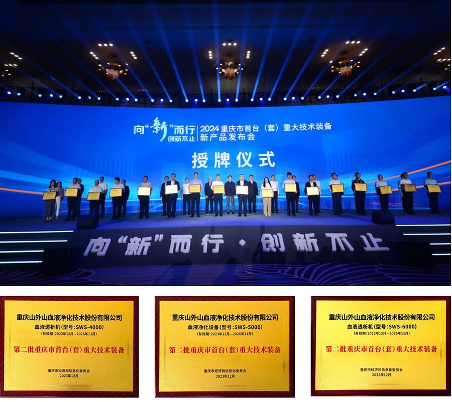 2024年5月12日,2024重慶市首臺(套)重大技術裝備新產品發(fā)布會上,重慶山外山血液凈化技術股份有限公司(以下簡稱“山外山公司”,股票代碼:688410)三項產品被認定為第二批重慶市首臺(套)重大技術裝備產品。